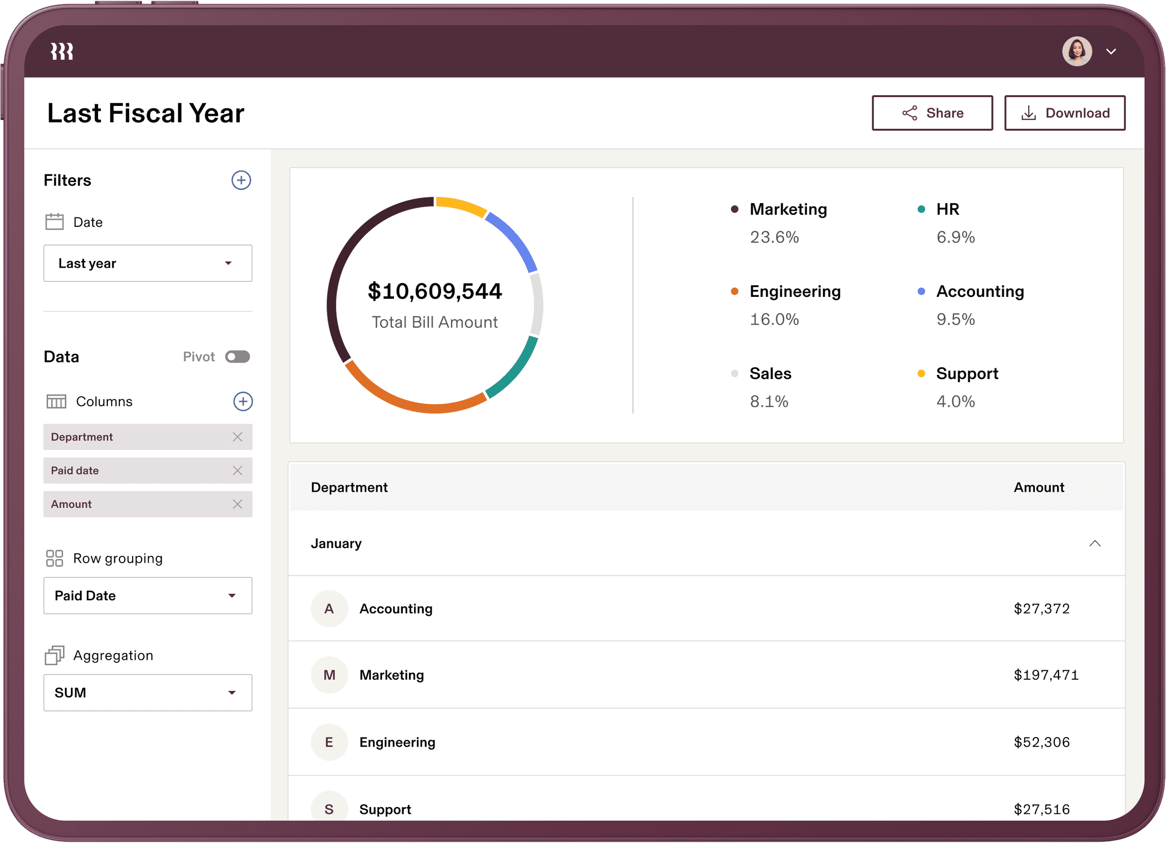 Grant access to bills based on employee attributes, like department and level, as well as invoice data. That means everyone can only view and approve bills relevant to their role—and no more.