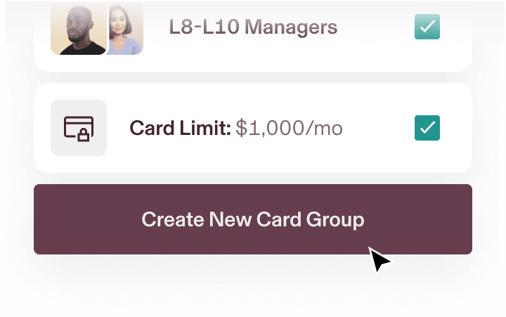 Issue corporate cards to global employees based on team, level, location, and more.