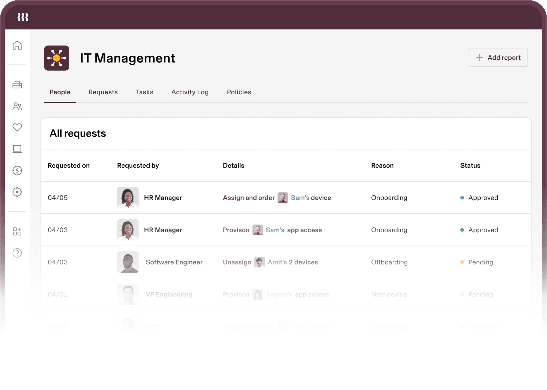 Custom approval polices and workflows based on real-time data keep you in control and in sync with HR—letting you onboard new employees as hands-on or hands-off as you want.