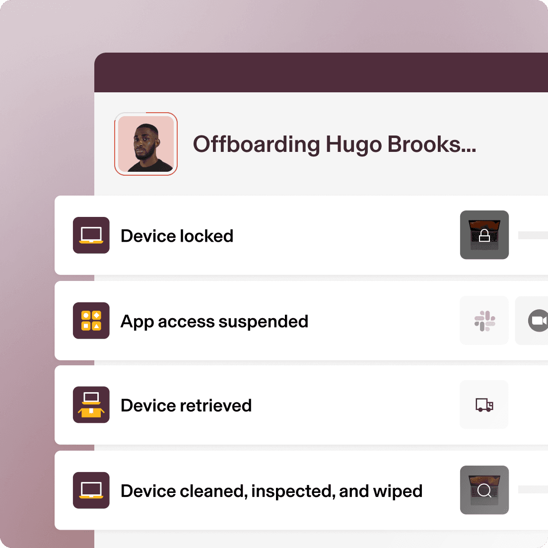 Retrieving employees' devices can quickly turn into a security risk—especially if they're remote. Rippling makes it easy by automating device offboarding, end to end.