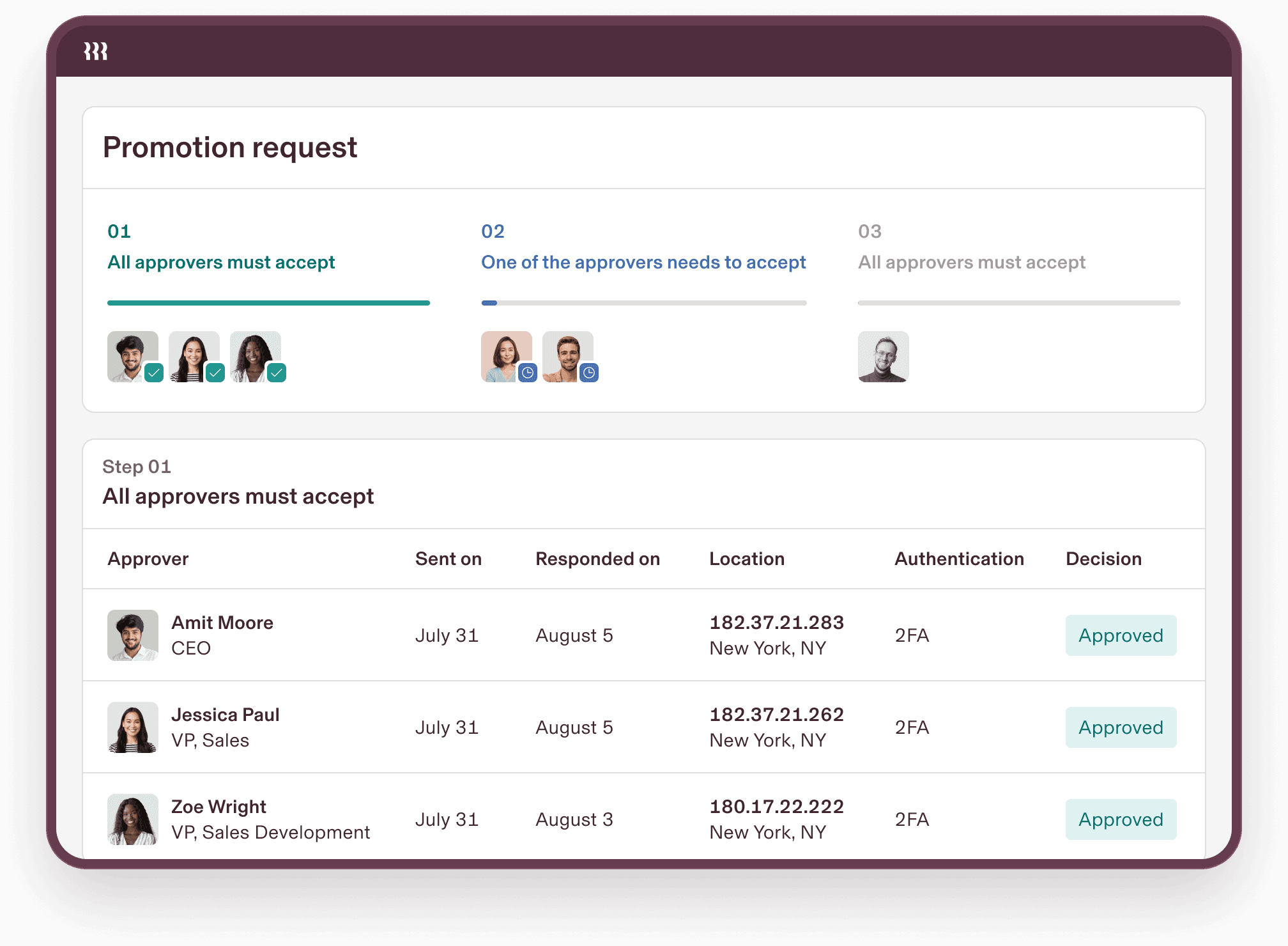 Build approval chains that respond to the dynamics of your business. Rippling supports multi-approver logic and can handle complex situations, like re-routing a request if its primary approver is on vacation.